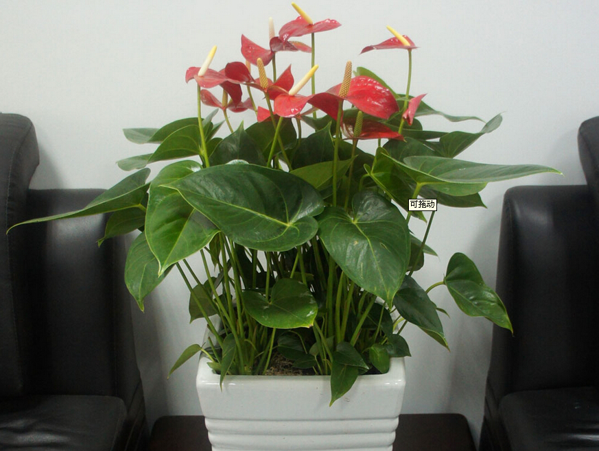 紅掌及其同屬的花卉是目前國內外新興的切花和盆花,每朵花的花期可達一個月,全年均可開花。由于花燭的花苞艷麗,植株美觀,觀賞期長,市場需求量增大。盆花多在室內的茶幾、案頭做裝飾花卉。